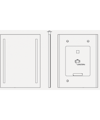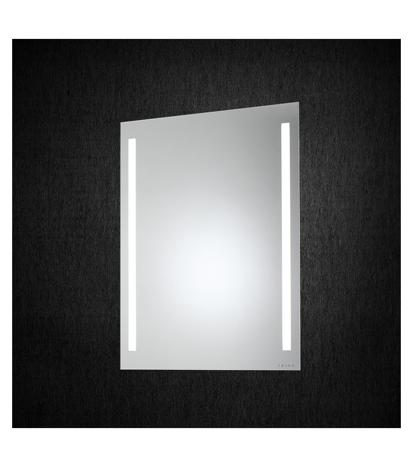 Silver mirror glass of top quality, LED 6000 K, AC/DC transformer, integrated illuminated glass shelf and rocker switch are included.
